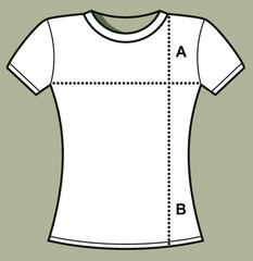 Width (A): Measured from under the arms (chest) while laid flat. Length (B): Measured from bottom to the highest point of the shoulder.